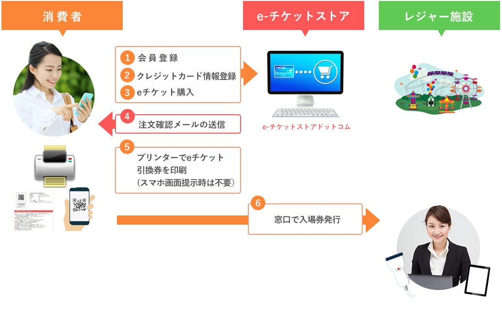 入場券を発券するレジャー施設に対し、入場券を「eチケット」としてインターネット上で販売する